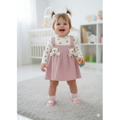 CANKUŞ 0547 MÜSLIN AYICIKLI BASKILI ELBISE