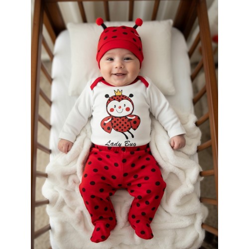 0-3 / 3-6 Aylık bedenler, Body-Patikli pantolon-şapka üçlü takım, %100 Pamuk kumaş